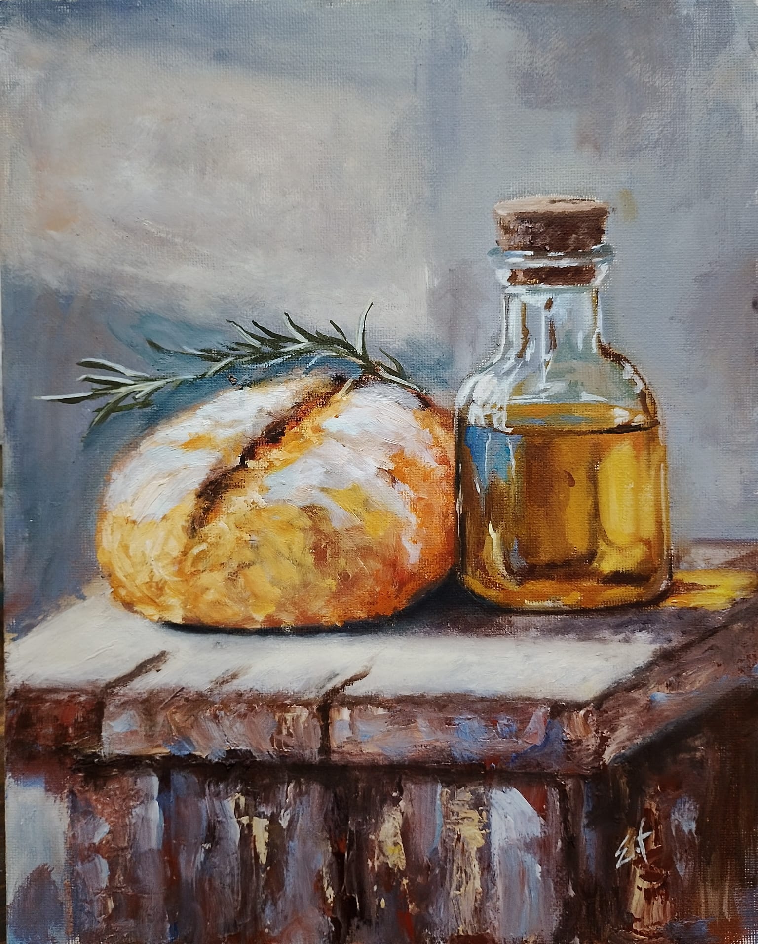 Bodegón en óleo . Cartón entelado 24 x 30